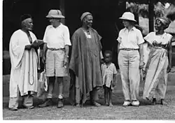 In February 1940 the Firestone Tire and Rubber Company financed a 4 1/2 month expedition led by director of the Smithsonian Institution's National Zoological Park, William M. Mann (and his wife Lucile Quarry Mann), to collect specimens of animals and other flora.[18] The Manns' account details that, "during the hotter part of the day one rides in a hammock, which is fastened to a frame and carried on the heads of four boys"[18] and photographs taken by the Manns depict this mode of transport.[19] The Smithsonian Institution Archives have digitized and made Lucile Quarry Mann's "Diary: Firestone Expedition to Liberia, 1940 (February 15 – August 8, 1940)" detailing the trip available online.[20] In 1999 the National Film Preservation Foundation funded the Smithsonian's preservation of color home movies of the expedition,[21] which are also available online.[22]