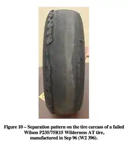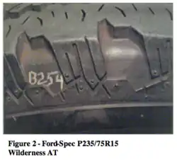 - ^ a b c d e f g h i j k l m n o p q r s t u v w x "Engineering Analysis Report and Initial Decision Regarding EA00-023: Firestone Wilderness AT Tires" (PDF). National Highway Traffic Safety Administration. October 2001.