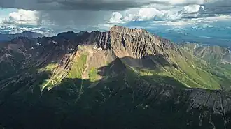 Fireweed Mountain is a prominent 6,956-foot (2,120 meter) mountain summit located in the Wrangell Mountains, in the U.S. state of Alaska. The peak is situated in Wrangell-St. Elias National Park and Preserve, immediately west of the terminus of the Kennicott Glacier, and 5 mi (8 km) west-northwest of McCarthy. Precipitation runoff from the eight-mile-long by five-mile-wide mountain drains into tributaries of the Chitina River, which in turn is part of the Copper River drainage basin. The mountain's name was given in the 1920s by Molly Gilmore, a lifelong resident of the McCarthy area, who at age 17, named the mountain for the abundance of fireweed which grew on the mountain following forest fires.[3] Although fireweed is the most common and well-known flower in Alaska, it is not commemorated on any other Alaskan mountain. The mountain's name was officially adopted in 1966 by the U.S. Board on Geographic Names. On a clear day the summit of Fireweed Mountain offers views of Mount Blackburn to the northwest, and Regal Mountain to the northeast.