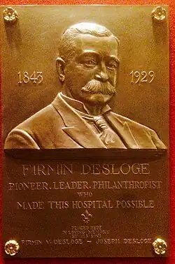 In February 1930, Saint Louis University received a $1 million bequest ($18,822,709 today[3]) from the estate of Firmin Vincent Desloge,[4] a member of the Desloge Family in America, who provided in his will, funds for a hospital to serve St. Louis University and to replace the old St. Mary's Hospital, both in St. Louis.[5] Desloge's wife, Lydia Desloge (née Lydia Holden Davis), donated another $100,000 to build a chapel next to the hospital.[6]