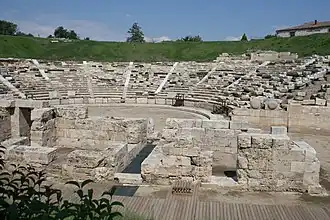 The ancient theatre was initially associated with the worship of the god Dionysus and the performance of theatrical and musical activities, and later with the administration of the koinon for the meetings of the city assembly, which was called agora. An indication of these is a small votive altar dedicated to the god Dionysus, found near the theatre where there were supposed sanctuaries and the names of the representatives of the city-state who participated in the Federation of Thessaly and who appear in the seats of the ancient theatre.