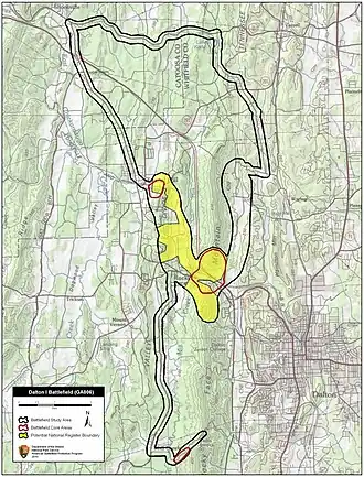 Much of the battlefield landscape has been compromised by Interstate 75, development along US Route 41, the growth of the City of Dalton, and subdivision of the Crow Valley and Tunnel Hill areas.[3]