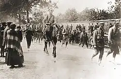 The First Cadre Company came into formation when the Riflemen's Association and the Polish Rifle Squads were mobilized between 29 July and 2 August 1914 by Józef Piłsudski. At 6pm on 3 August the First Cadre was formally created in the Oleandry district of Kraków (just east of Jordan Park). On 4 and 5 August the Cadre underwent re-organization while the soldiers received short yet extensive training. Tadeusz Kasprzycki was appointed commander. The Cadre consisted of four platoons, each consisting of four groups of 10 soldiers each. The exact number of soldiers varies according to the source, but estimates generally put it at somewhere between 145 and 168 soldiers,[1] which included the notable The Seven Lancers of Belina.[2]