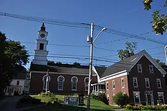 The First Free Will Baptist Church (also known Miss Perkins' High School and Holderness Academy) are a historic Free Will Baptist Church complex in Ashland, New Hampshire. The complex consists of three buildings: the brick church building, which was built in 1834; the old vestry, a brick building standing near the street which was built c. 1835 as a school and converted to a vestry in 1878; and the new vestry, a wooden structure added in 1899 to join the two brick buildings together. The church, a fine vernacular Federal style building when it was built, had its interior extensively restyled in the late 19th and early 20th centuries.[2] The complex was listed on the National Register of Historic Places in 1983,[1] primarily as a good example of modest Victorian church architecture. It now houses the Ashland Community Church.