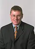 In the months that followed Morgan's ascension to the premiership, German engaged in negotiations with him to form a coalition between Labour and the Liberal Democrats. After the coalition was approved by their respective parties, a new coalition government between the parties was formed on 16 October 2000, with German becoming the first deputy first minister of Wales under Morgan, whose office was renamed to first minister. The Liberal Democrats left opposition and remained in government until May 2003, when Morgan ended the coalition after his party made gains in the 2003 National Assembly for Wales election.[3][4] The Liberal Democrats returned to opposition with German forming a second frontbench team as Morgan formed his new cabinet in May.[5]