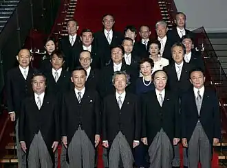 ![]() Prime Minister Junichiro Koizumi (front row, centre) with his reshuffled cabinet inside the Kantei, September 22, 2003 | |