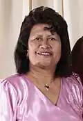 | Christina Salii | 25 October 1985 | 20 August 1988 | Lazarus Salii | Known as Tina Salii, she was First Lady from 1985 until President Salii's death in office in 1988.[7] In 2007, Salii was named Dilbuked of Ngerchedok Clan of Ngebuked village in Ngaraard state, the counterpart to the traditional male chiefs.[8] Salii and the late president are the parents of Kathleen M. Salii, the first female Palauan justice of the Supreme Court of Palau.[9] | |