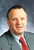 Henry McLeish resigned as first minister and leader of Scottish Labour in the aftermath of the Officegate scandal, which centred on expenses claimed for his Glenrothes constituency office.[2] McConnell was elected as Labour leader and was nominated for the post of first minister by a vote of the Scottish Parliament on 22 November, defeating Scottish National Party leader John Swinney, Scottish Conservative leader David McLetchie and Independent MSP Dennis Canavan by 70 votes to 34, 19 and 3 respectively.[3]