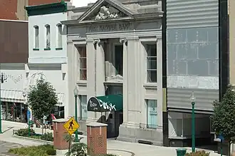 First National Bank is a historic structure located in downtown Clinton, Iowa, United States. Clinton architect A.H. Morrell designed the building in the Classical Revival style. It was built by Daniel Haring from 1911 to 1912. The two-story structure features a pediment and fluted columns flanking the main entrance. The exterior is composed of dressed stone and is 50 feet (15 m) wide.[2] It was listed on the National Register of Historic Places in 1985.[1]
