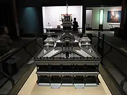 The First National Bank building was initially constructed in 1872 as the main bank of the Mitsui group. In the following year, it became the headquarters of the Dai-Ichi Bank (lit. 'First National Bank'), which was founded by Shibusawa Eiichi (1840-1931) and other businessmen. The building featured a traditional Edo-style structure, but its exterior was in a pseudo-western style. Shimizu Kisuke II, who designed and constructed the building, had practiced western-style architecture in the foreign concession in Yokohama and was Japan's leading house builder. He also worked on structures such as the "Tsukiji Hotel" and the "Mitsui House" at Suruga-cho.