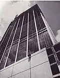 The $35 million skyscraper was designed for the First National Bank in Dallas by architects George Dahl and Thomas E. Stanley, built to replace First National's home on Main Street.[12] It originally was proposed to be 96 feet (29 m) higher, but was scaled back after determining it would be a hazard to flights leaving Dallas Love Field.[13] By choosing a site with lower elevation, the tower, even with a modified height, was still taller than rival bank's Republic Center. The 2-acre (0.81 ha) block of land previously contained First National's motor bank, which was demolished for the new structure. The exterior, featuring a dark and light contrasting theme, was clad in more than 8 acres (3.2 ha) of dark gray glass and white marble imported from Greece.[12] The building's construction began in 1961 and used more than 25,000 tons of steel. Construction was handled jointly by Robert E. McKee, Inc. and Henry C. Beck Co.[14] At the time of opening in 1965, it was the tallest building west of the Mississippi River, until surpassed by 555 California Street in San Francisco in 1969. It was the tallest in Texas until 1971, when One Shell Plaza was built in Houston. In 1974, Renaissance Tower became the tallest in Dallas.[15]
