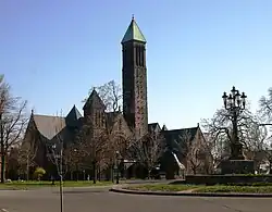 The First Presbyterian Church in Buffalo, New York was the first organized religious body formed in what was then the western frontier of New York State. The church is part of the Presbytery of Western New York which is part of the Synod of the Northeast, a regional body of the Presbyterian Church (USA). The town of Buffalo was sparsely populated when the church was organized on February 2, 1812. However, having survived the War of 1812, the town of Buffalo was rebuilt and rapidly grew with the completion of the Erie Canal in 1825. The first two buildings were located on the same downtown lot. However, the congregation relocated between 1889 and 1891 to its present location approximately one and-a-half miles to the north in a more residential area.