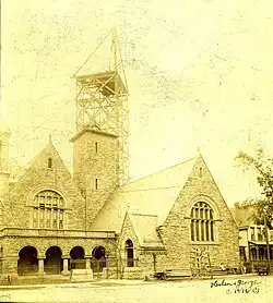 A special dedication ceremony was held the following Sunday on October 19, 1924. It was during this redecorating that the memorial windows of such exquisite design and color were installed. In 1925 the cornerstone for the Parish House was laid, the new parish house was dedicated in February 1926. This was during the pastorate of Dr. George Arthur Buttrick, D.D.[2]