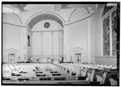 The church building was designed by notable architect Stanford White and was built in 1910 at a cost of $152,000. It was listed on the National Register of Historic Places in December 2009.[1][5] A centennial dedication of the sanctuary was held on December 18, 2010. Pastors or representatives of deceased pastors each spoke during the service of dedication.[6]