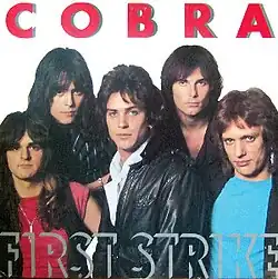 First Strike is the debut and sole studio album released by Swiss-American hard rock band Cobra. Originally released in 1983 by Epic Records,[1] the record was produced by Tom Allom and remastered in 2008 by Rock Candy.[2] The album in the British music magazine Kerrang! took first place in the import charts.[3] The single "Blood on Your Money" received MTV airplay, while "Looking at You" and "Travelin' Man" received promotion at the Memphis TV Club.
