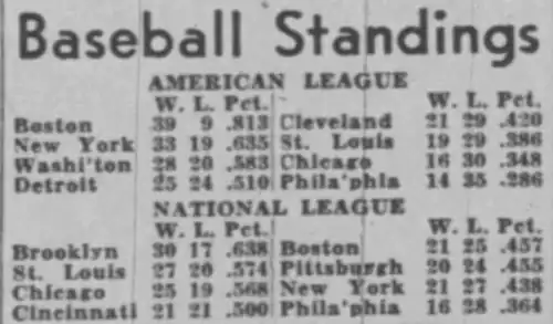 Within MLB, the New York Yankees finished in the first division for a record 39 consecutive seasons (1926–1964) while, by comparison, the Chicago Cubs once finished in the second division for 20 seasons in a row (1947–1966).