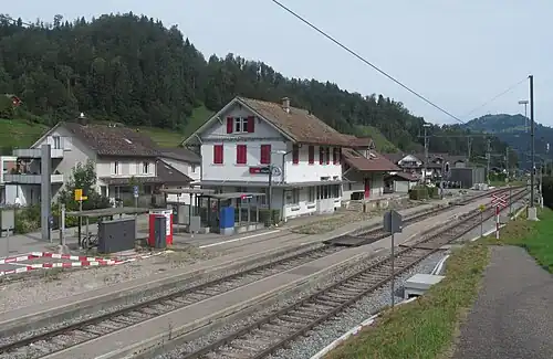 Fischenthal railway station is a railway station in the Swiss canton of Zurich, and the municipality of Fischenthal (Töss Valley). It is located on the Tösstalbahn between Winterthur and Rüti ZH.