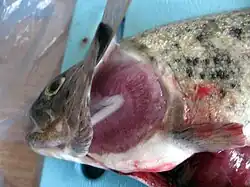 Fish anatomy is the study of the form or morphology of fish. It can be contrasted with fish physiology, which is the study of how the component parts of fish function together in the living fish.[1] In practice, fish anatomy and fish physiology complement each other, the former dealing with the structure of a fish, its organs or component parts and how they are put together, as might be observed on a dissecting table or under a microscope, and the latter dealing with how those components function together in living fish.