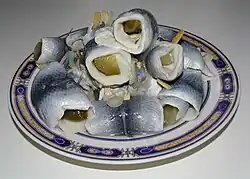 This is a result of differences in national tastes and changing fish stocks. To meet demand for cod, the most popular fish to eat with chips,[22] the UK imports 83 per cent of that fish it eats,[50] from international waters off Scandinavia, usually the Barents Sea, plied mostly by Icelandic, Norwegian and Russian vessels.[51] In turn, the herring abundant in British waters[52] is taken mostly by fishermen from other EU countries[53][n] and exported to Germany where it is the third most popular fish, much of it used to make Rollmops, a comfort food similar to fish and chips popular as a hangover cure, since there is less demand for herring in the UK[52] than there was before the species was overfished in the 1970s; kippers have been a less common breakfast since then.[54][o] Two-thirds of the UK's shellfish catch, at £430 million a quarter of all British fish exports by value, ends up in France and Spain; diners in the former country are also partial to saithe, a species largely passed up in the UK.[56][p] British whelks also feed a thriving market in East Asia.[57]