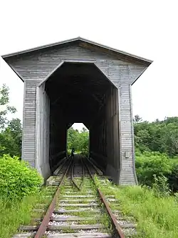 - ^ a b Hugh Henry (1974). "NRHP nomination for Fisher Covered Railroad Bridge". National Park Service. Retrieved December 9, 2016. with photos from 1974