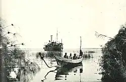 A total of 235 separate stations were surveyed between 22 August 1927 and 19 February 1928, using a wide variety of different fishing gears and techniques.[2] Fish were captured using three different mesh sizes of gill net, as well as trammel nets, a small beam trawl, cast nets, surface and bottom lines, and native basket trawls, papyrus seines ("Ngogo") or fishing weirs ("keks").[2] Other equipment used during the survey included: secchi disc, plankton nets, Nansen's and Apstein's nets, water sample bottles, a Peterson grab, drift-bottles, a Hardy plankton recorder and sounding lines. Environmental parameters measured included: temperature (air and water), depth, pH, water transparency (Secchi depth).[2] Detailed observations were made of local fishing practices and the composition of commercial catches at sites all around the lake. The steam tug SS Kavirondo was chartered from the Kenya and Uganda Railway for the six months in order to deploy fishing gears and provide transportation.[2]