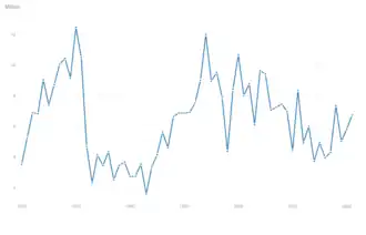 In 2023 and 2024, another El Niño event produced some negative effects on the economy, anchovy catch, fishmeal, and fish oil production. Due to a lack of anchovy catch, some fishmeal factories had to close down. In the first eight months of 2023, compared to 2022, fishmeal production was down by 28% and fish oil production was down by 24%. According to Reuters, the Peruvian government would have to spend about USD$1.06 billion to combat the economic and climatic effects of El Niño.[55][56] As a result, exports accounted for about US$926 million, a significantly lesser value compared to US$1.8 billion in 2022. The average fishmeal price in 2023 was about US$1,723 per tonne, an approximate 5% increase from the previous year.[54]