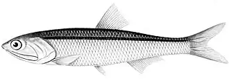 Besides the Peruvian anchoveta, a large variety of other teleosts are also caught, including the following: Pacific sardine (Sardinops sagax), Chilean jack mackerel (Trachurus murphyi), Pacific chub mackerel (Scomber japonicus), Peruvian hake (Merluccius gayi peruanus), Eastern Pacific bonito (Sarda chiliensis), Longnose anchovy (Anchoa nasus), common dolphinfish (Coryphaena hippurus), flathead grey mullet (Mugil cephalus), Pacific menhaden (Ethmidium maculatum), lumptail searobin (Prionotus stephanophrys) along with other flying fish, palm ruff (Seriolella violacea), the Chilean silverside (Odontesthes regia), the Peruvian rock seabass (Paralabrax humeralis), cabinza grunt (Isacia conceptionis), punctuated snake-eel (Ophichthus remiger), Swordfish (Xiphias gladius), the Peruvian moonfish (Selene peruviana), the Pacific sierra (Scomberomorus sierra), flatfishes (Pleuronectiformes), Paloma pompano (Trachinotus paitensis), the Peruvian grunt (Anisotremus scapularis), the Peruvian morwong (Cheilodactylus variegatus), the black snook (Centropomus nigrescens), the Californian needlefish (Strongylura exilis), chalapo clinid (Labrisomus philippii), fortune jack (Seriola peruana), and the grape-eye seabass (Hemilutjanus macrophthalmos).[19]