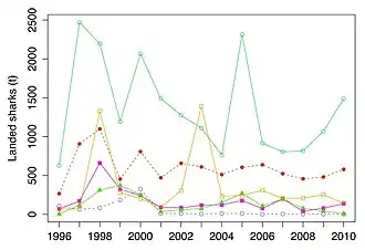 - ^ Gonzalez-Pestana, Adriana; Kouri J., Carlos; Valez-Zuazo, Ximena (2016-04-12). "Shark fisheries in the Southeast Pacific: A 61-year analysis from Peru". F1000Research. 3 (164): 164. doi:10.12688/f1000research.4412.2. PMC 5017296. PMID 27635216.