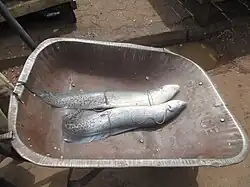 Capture fisheries in Uganda are characterized by plank canoes and to a lesser extent, fibreglass boats. Some dugout canoes are also still being used. The plank canoes are generally 4 to 12 m in length and dugout canoes average 3.5 m. The total number of vessels is about 17,000 and about 20% of these are motorised. Artisanal fishermen utilise various gears including gillnets, seines and hook and line. In a number of localities, traditional methods including baskets, traps and mosquito nets continue to be used.[12] The gears commonly used include gill nets, lift-nets, scoop-nets used in light fishing; hook and line gear (hand-lines, fishing rods or tackles) and fish traps.[2]