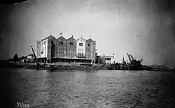 Development came to a halt with the outbreak of the First World War, when trawlers were requisitioned by the military,[10] allowing fish stocks to replenish. The growing fleet of steam trawlers necessitated the creation of industrial and commercial jobs, thereby making the geographical consolidation of these activities a necessity.[11]