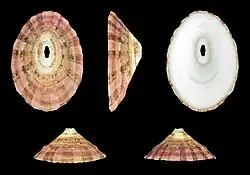 Fissurella volcano, commonly named the volcano limpet or volcano keyhole limpet, is a species of small to medium-sized sea snails, marine gastropod mollusks in the family Fissurellidae, the keyhole limpets.[1] Like other members of the keyhole limpet family, the volcano limpet is not considered a "true" limpet.