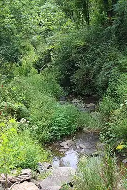 A waterfall known as the Fitch Creek Falls is on Fitch Creek.[7] One reach of the creek flows alongside a road known as Evergreen Road at a distance of approximately 100 feet (30 m).[3]