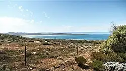 Fitzgerald Bay is a large bay located between Point Lowly and Backy Point in South Australia's upper Spencer Gulf. The bay's shoreline consists mostly of pebble beaches and sparse grey mangroves. In the 2000s the bay was used for the farming of yellowtail kingfish until their closure circa 2011 in response to high levels of fish mortality.[1] Understanding of the environmental impacts of yellowtail kingfish farming is limited.[2] As of 2021, fish farming has not returned to Fitzgerald Bay, but aquaculture zones remain in place, and Clean Seas is authorised to restock fish farms there. There are approximately forty shacks and coastal homes sparsely distributed along the fringe of Fitzgerald Bay whose interests are represented by the Cultana Jenkins Shackowners' Association.