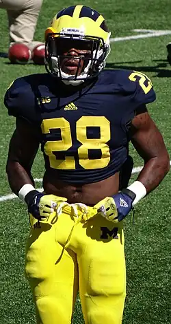 After suffering a shoulder injury, he did not play against Notre Dame in the second week of the season. He returned to the lineup the following week and went on to record his second 100-yard rushing game in the Battle for the Little Brown Jug against Minnesota in the fifth game of the season, totaling 108 yards on 11 carries for an average of 9.8 yards per carry.[20][21]