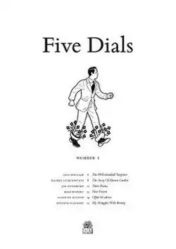 Though available online, the magazine was intended to be printed and enjoyed on paper. Five Dials was downloadable from the Hamish Hamilton website and subscribers received email notifications about new issues. In his editor's letter for the June 2008 inaugural issue, Craig Taylor described Five Dials as "the product of a few editors and writers who would like to push a small enterprise into the inboxes of anyone interested in good writing."[4] Five Dials closed after 16 years and 66 issues; however, the magazine's complete archive remains available.[5][6]