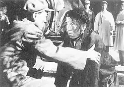 Minority film is a relatively new genre that had an appeal to China's audience in the 1950s and 1960s. Ethnic minorities in China mainly include "Mongols, Tibetans, and Uighurs in the north and northwest, the Miao, Yi, Zhuang, and Bai minorities in the southwest, and Koreans and Manchus in the northeast".[7] The exotic settings allowed filmmakers to explore the less represented subjects, such as love, oppression, and class exploitation, which extends beyond ethnic boundaries. Serfs (Nongnu, 1963), a minority film set in the northwest region, presents the suffering of the oppressed Tibetan peasants. Jampa was a Tibetan serf. Growing up, he was constantly exploited by his master and became extremely introverted, refusing to speak to anyone.[8] Jampa's life was saved by a People's Liberation Army soldier who died in the rescue. The Han soldier is symbolic of advanced culture and ideology, and savior of ethnic minority groups.[9] After years of silence, the first words that Jampa uttered was "Chairman Mao," when he directed his gaze towards a portrait of the leader on the wall.[10] The deserts of the northwest made the portrayal of class struggle palpable to the Han audiences. Serfs further achieved a degree of realism by casting a large number of "non-professional actors/actresses and actual former serfs. They played the roles of protagonists, integrating their real identities with their cinematic roles."[11] The film promotes the virtues of the Han Chinese by showing that the Communist revolution in China saved the entire Chinese nation from class exploitation.