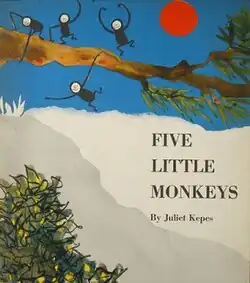 Five Little Monkeys is a 1952 book by Juliet Kepes. It won her a Caldecott Honor citation in 1953, as well as other awards from the Museum of Modern Art,[1] the American Institute of Graphic Artists, and the Society of Illustrators. The New York Times cited her books four times among the ten best children's books of the year.
