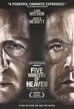 Five Minutes of Heaven is a 2009 film directed by Oliver Hirschbiegel from a script by Guy Hibbert. The film premiered on 19 January 2009 at the 25th Sundance Film Festival[2] where it won the World Cinema Dramatic Directing Award for Hirschbiegel, and the World Cinema Screenwriting Award for Hibbert.[3] As a television film it was broadcast on BBC Two on 5 April 2009, and also had an international feature film release.