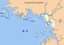 The Five West Sea Islands (also called the Five Islands of the West Sea or the Northwest Islands) (Korean: 서해오도; Hanja: 西海五島) refers to the five islands in the West Sea (Yellow Sea) administered by Incheon, South Korea. They are Yeonpyeongdo, Baengnyeongdo, Daecheongdo, Socheongdo and Soyeonpyeongdo. Their positions are much closer to North Korea as these islands are originally part of Hwanghae Province and their sovereignties are claimed by North Korea,[1] but they are controlled by South Korea since the United Nations forces established the Northern Limit Line (NLL) north of the islands in 1953 following the Korean War.[2]