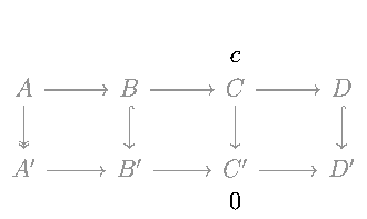 - By exactness, c′ − n(c) is in the image of s, so there exists b′ in B′ with s(b′) = c′ − n(c).