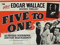 Five To One is a 1963 British second feature ('B')[1] crime film directed by Gordon Flemyng and starring Lee Montague, Ingrid Hafner and John Thaw.[2][3] It was made at Merton Park Studios as part of the long-running series of Edgar Wallace adaptations. The screenplay was by Roger Marshall, based on the 1928 Wallace story The Thief in the Night.[4]