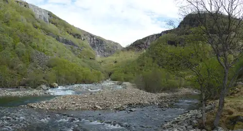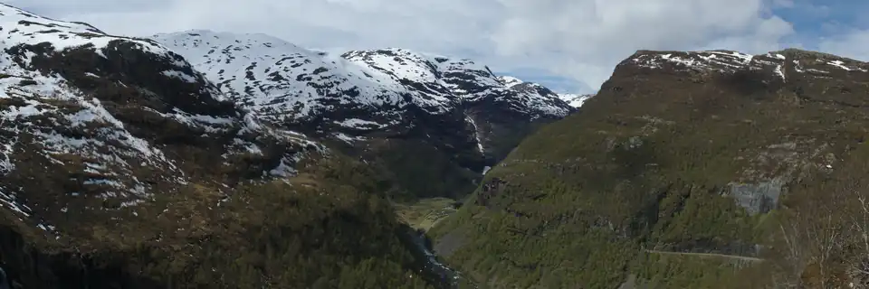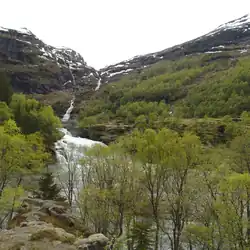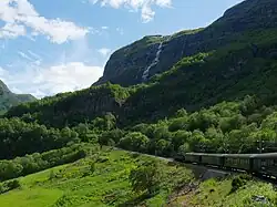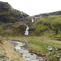 Flåmsdalen is a valley in Aurland Municipality in Vestland county, Norway. It is 18 kilometers (11 mi) long and runs from Myrdal to the village of Flåm, dropping 860 meters (2,820 ft) over the course of its run. The river Flåmselvi runs through the valley, as does the Flåm Line, a famous tourist destination.[1]
