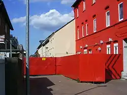 Flaßhofstrasse was originally called Eintrachtstrasse. Prostitution on the upper part of this street occurred prior to 1914. The street's reputation soon became known beyond the city. When the Ruhr uprising broke out in defiance of the Kapp Putsch in March 1920, the Ruhr Red Army, whose goal was the establishment of a Dictatorship of the proletariat, put into service the so-called "Red Cross sisters" as medical personnel, who consisted exclusively of prostitutes who were recruited "especially from Oberhausen".[3] Some of them, the Karbol-Mäuschen (carbolic mice), took part in the looting of Schloss Sythen on March 21, 1920, which was then in the possession of the Count Otto von Westerholt and Gysenberg (1875-1920).[4][5] "Red Cross Sisters" of the Red Ruhr Army, who were found with a pistol were shot by the Freikorps Epp, who had been deployed against the Ruhr uprising.[6][7]
