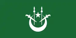 Flag of the Mufti | A green flag with a white crescent and star and two white kris and spears charged on the fly. |