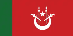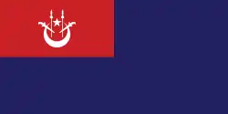 | Design | A red field defaced with a white crescent and star and two white kris and spears. |