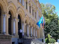 The flag of Asturias is a blue field with a yellow Cruz de la Victoria (English: Victory Cross) shifted towards the hoist. It has served as one of the symbols of Asturias since the late 18th century.