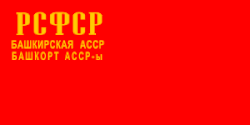 | Design | The flag of the Bashkir ASSR is a variant of the flag of the Russian SFSR with the "Башкирская АССР" and "Башҡорт АССР-ы" inscription below the hammer and sickle. |