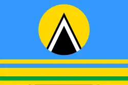 | Design | A rectangular field arranged with two strips at even proportions (azure on top, and green on bottom) and a stylized crown on the azure strip. |