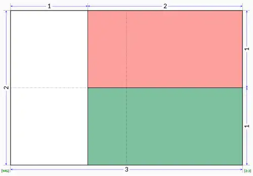 | Design | Two equal horizontal bands of red and green with a vertical white band of the same size on the hoist side |