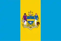 | Design | A vertical triband with blue (left and right) and yellow (middle), with the Seal of Philadelphia (minus the text) in the center |